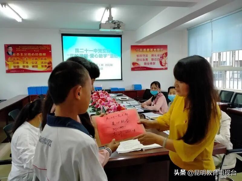 这位“送礼”人叫姜继琼,是昆明市第二十一中学初二七班刘红阳的妈妈,在来学校之前,姜继琼走了一个半小时的山路,只为了能赶在下午上课前把礼物送到。